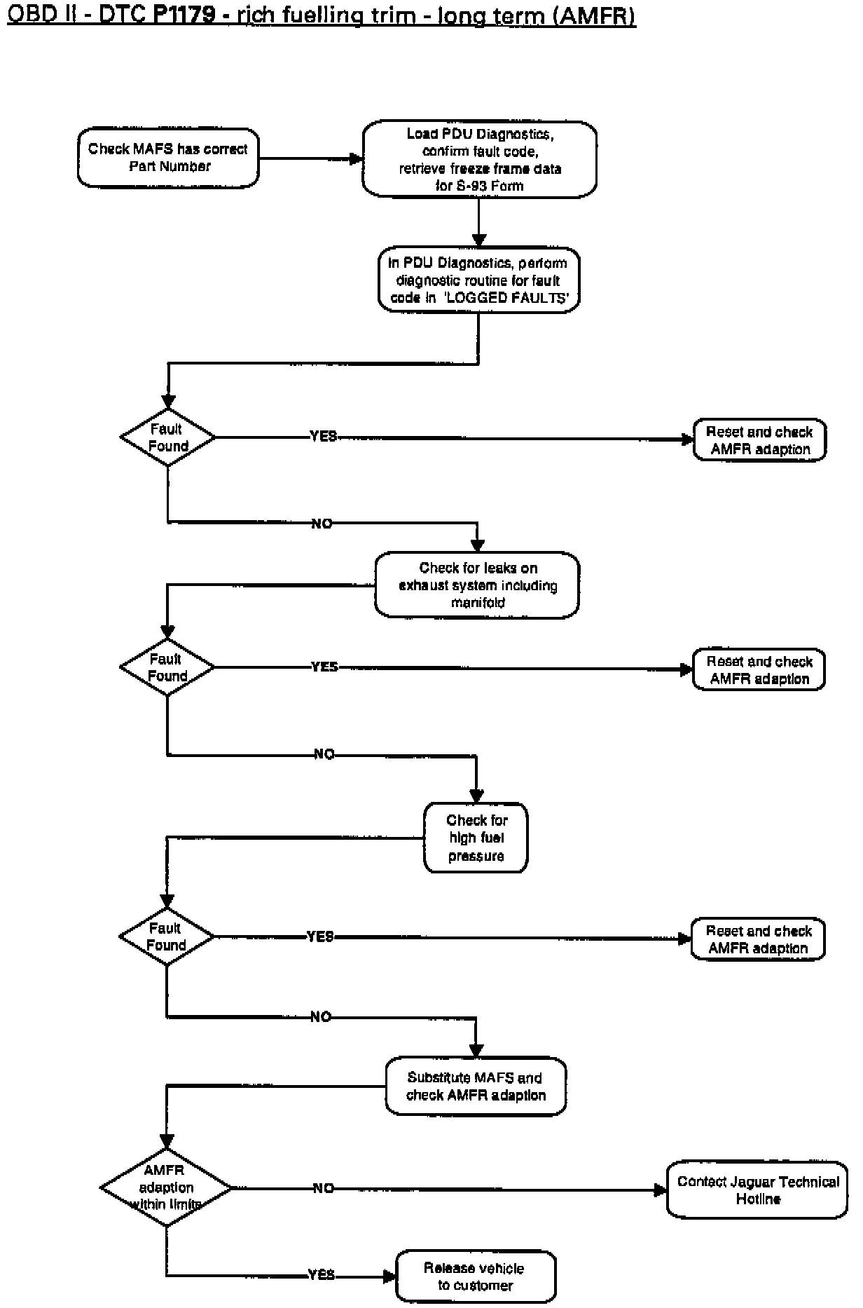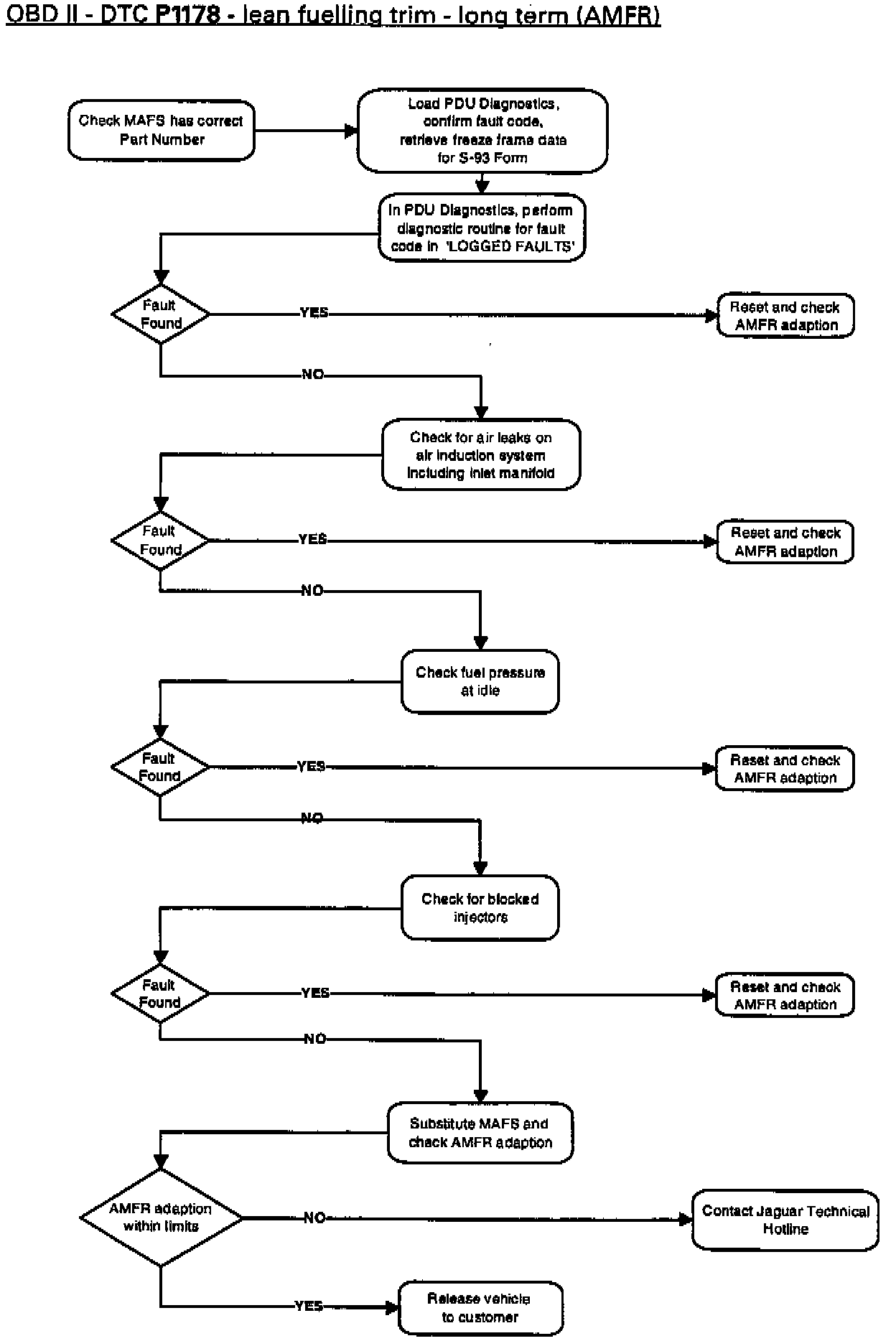 After repairing a fault described in the flow chart, complete the next flow chart instruction to "Reset and Check AMFR adaption" or "Reset and Check FMFR adaption" to determine if the fault has or has not been successfully repaired. It is not necessary to check or reset adaptions if no faults are identified. Resetting and checking the AMFR and FMFR adaptions is achieved by following the procedure.