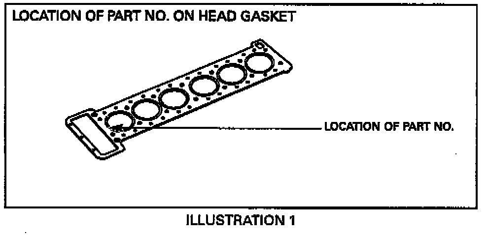 The revised gasket can be identified by the part no. stamped on the gasket near the word "TOP" (Illustration 1). Two part numbers are available depending on the engine no.