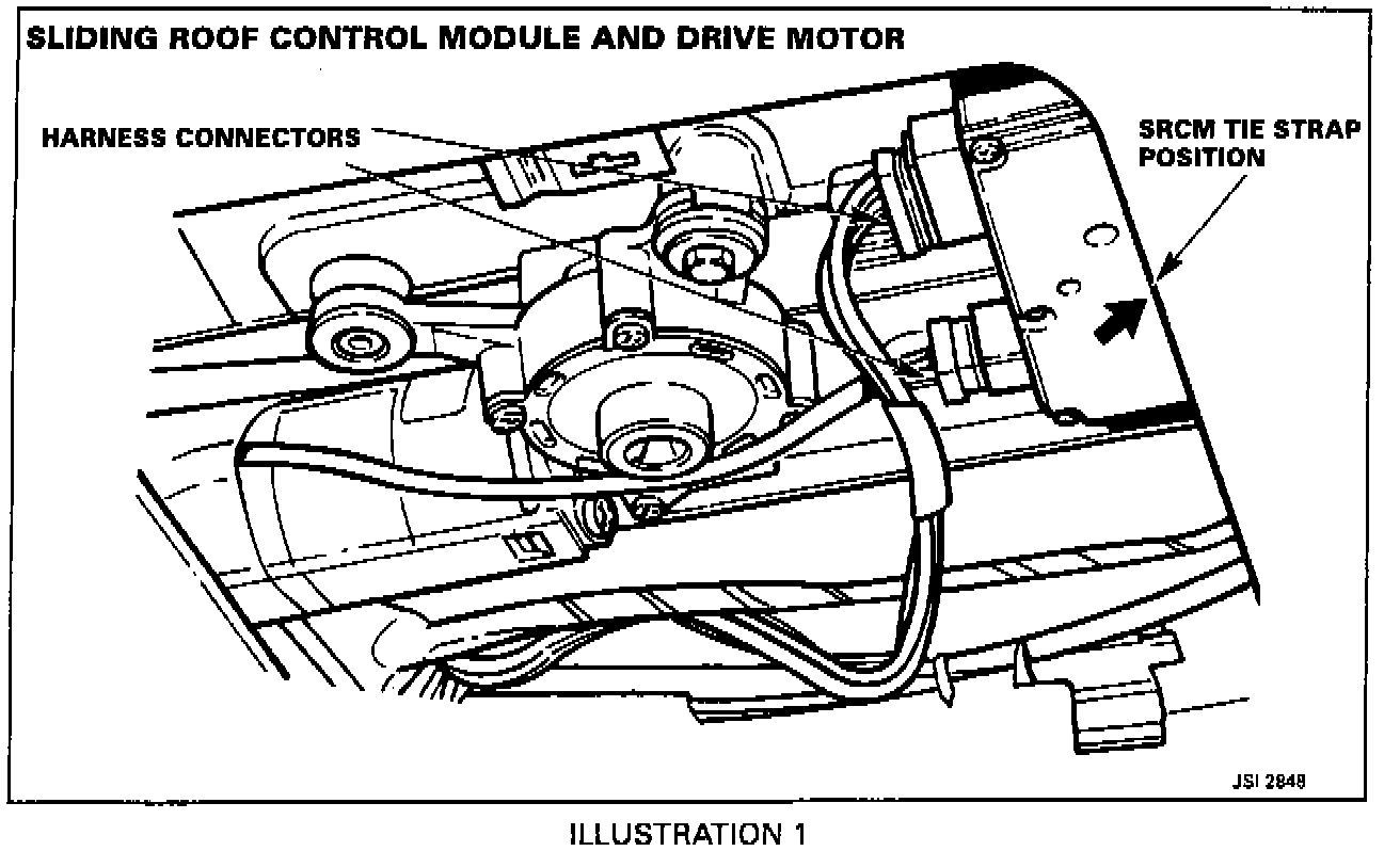 The installed SRCM must be used to activate the sliding roof mechanism. If this SRCM is damaged, connect, but do not install, the replacement SRCM.