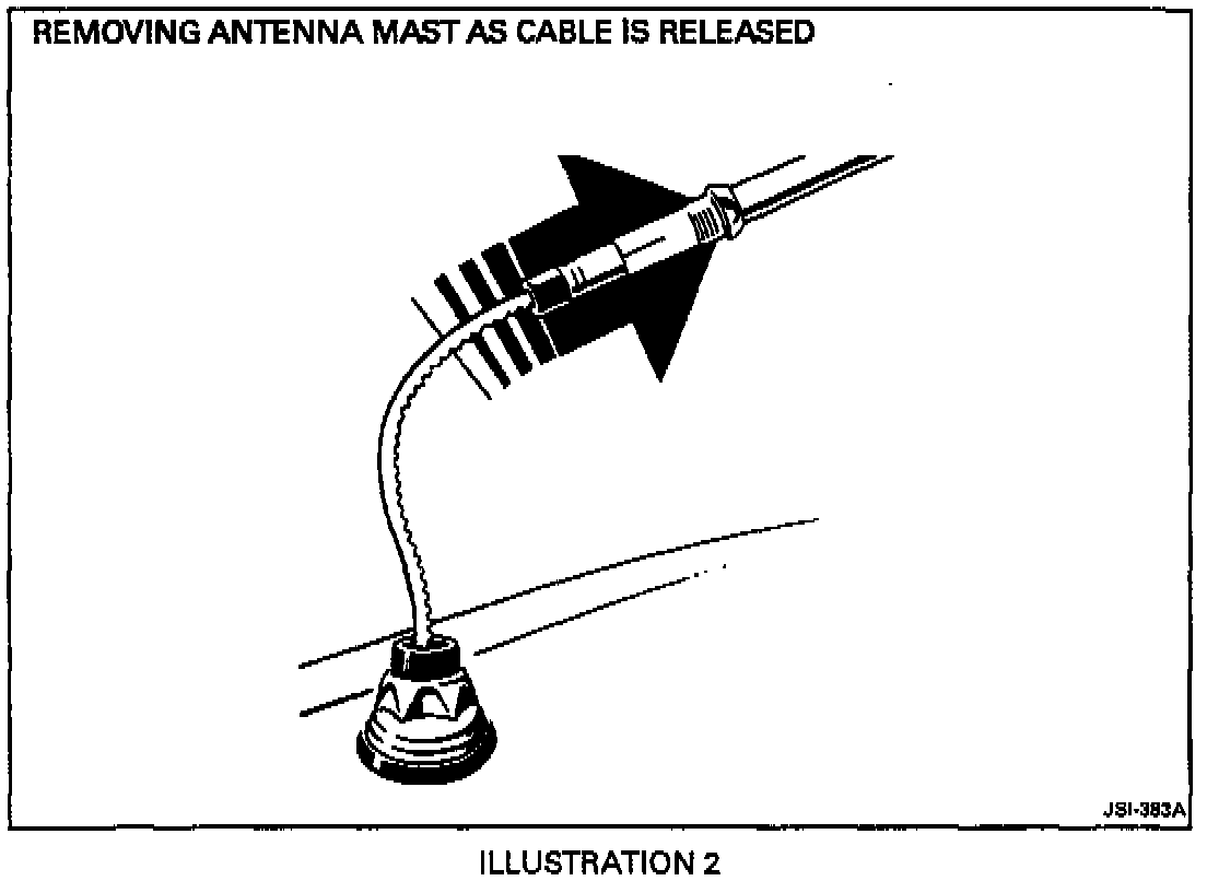 4. The mast and drive cable will be released by the motor (Illustration 2). Full extension of the mast should take approximately 7 seconds. A built in timer will shut off the drive motor after approximately 12 seconds.