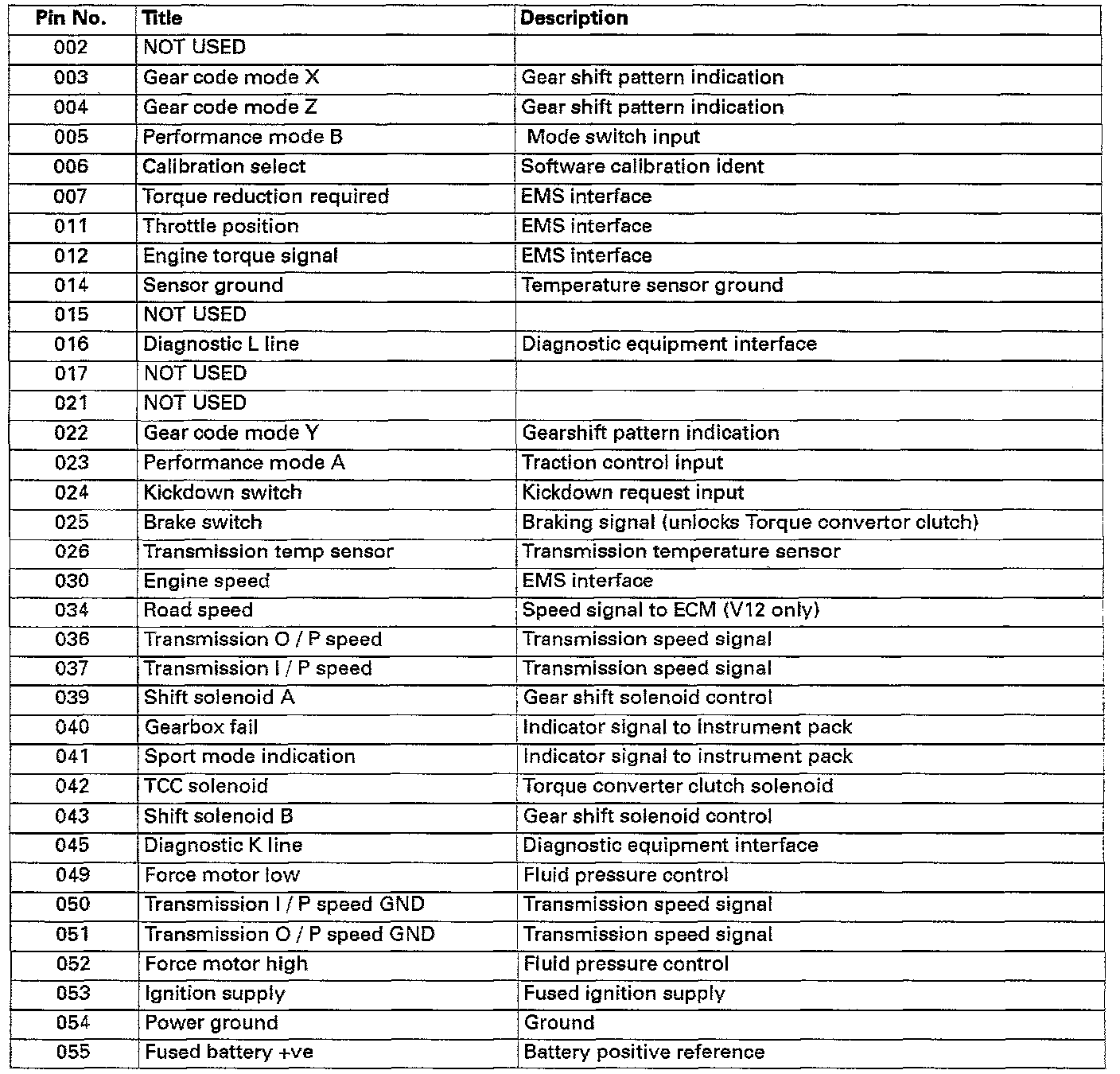 The transmission control module (TCM) is an electronic control unit for the control of the Powertrain 4L-80-E automatic transmission. The TCM senses various engine and transmission parameters to provide optimum transmission performance and refinement. The electronic control signals are applied to solenoid valves which operate the hydraulic circuits for gear selection and torque convertor clutch lock-up An electrically operated hydraulic pressure regulator is used to modulate gearshift pressures, giving smooth changes.
