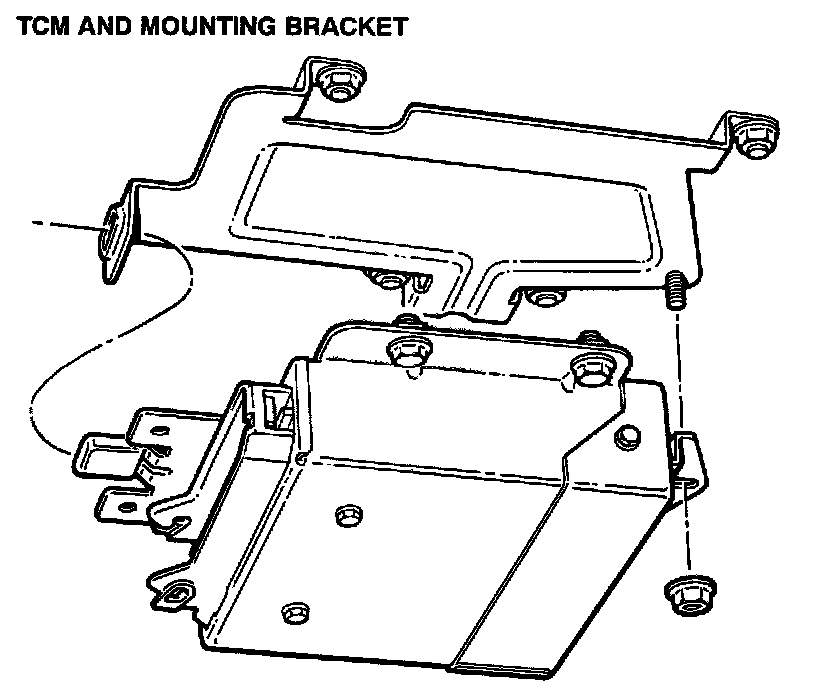 The new TCM is a single board unit contained in a rectangular casing. A 55-way connector on the casing provides the interface with the vehicle wiring. The TCM is installed on a two part bracket assembly in the interior, on the passenger side of the upper toe-board. One part of the bracket attaches to the mounting studs of the anti-lock braking system modulator and the other to the TCM. A single securing nut locks the two parts together, enabling easy removal/installation of the TCM.