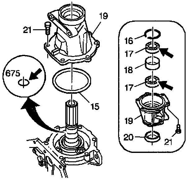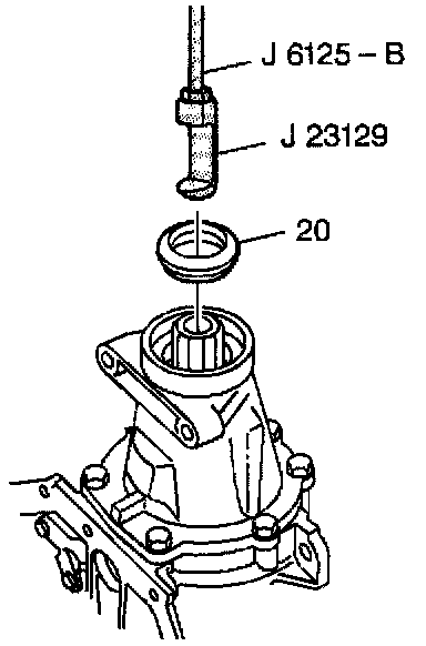 1. Remove the prop shaft front slip yoke oil seal (20) with the J 23129 and the J 6125-1B.