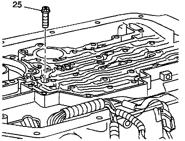 1. Remove the center support bolt (25) using a 3/8 inch Torx(r) socket.