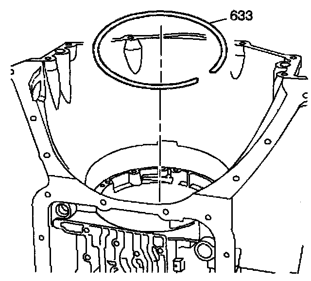 5. Remove the center support retainer ring (633).