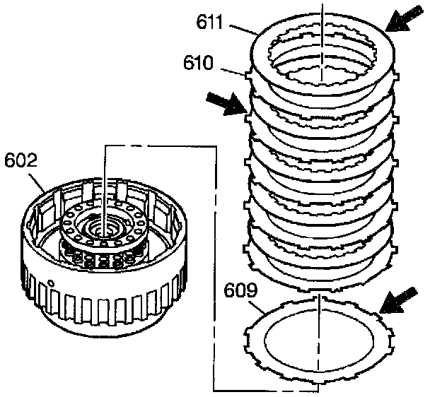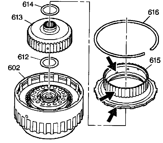 5. Remove the forward clutch hub thrust washer (612) (bronze). The washer may stick to the housing.