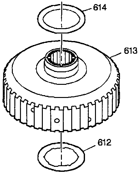 5. Install the forward clutch hub (613) into the forward clutch housing (602). Rotate the hub slightly in each direction in order to ease assembly.