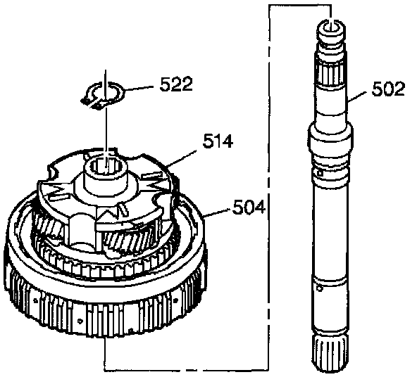8. Remove the forward clutch housing assembly (602) from the turbine shaft (502).