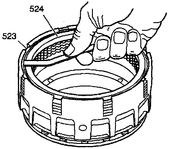Using a feeler gage, measure between the fourth clutch backing plate (524) and the fourth clutch backing plate retainer ring (523). The measurement should be