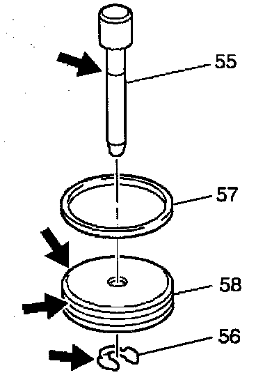 5. Inspect the servo piston (58) for wear and seal ring groove damage.