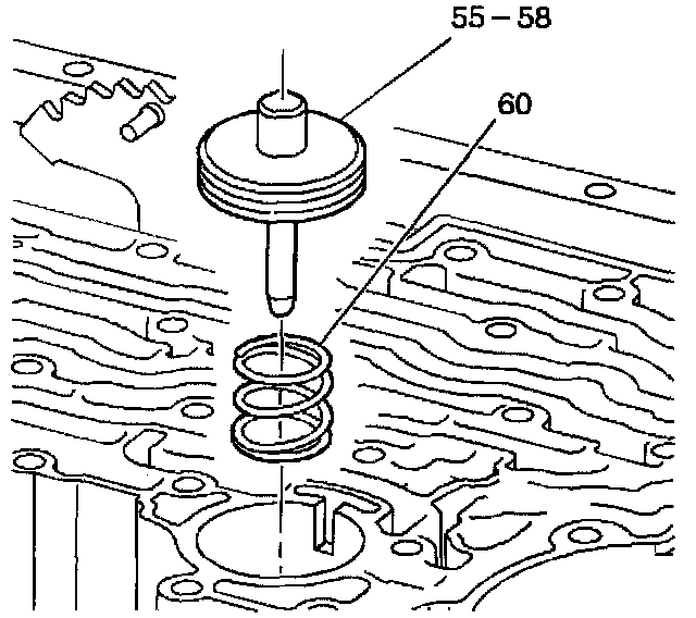 2. Install the manual 2-1 band servo assembly (55-58).