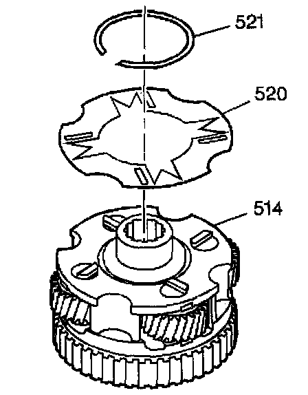5. Install the overdrive carrier pinion gear pin retainer (520). Align the pinion gear pins with the retainer slots.
