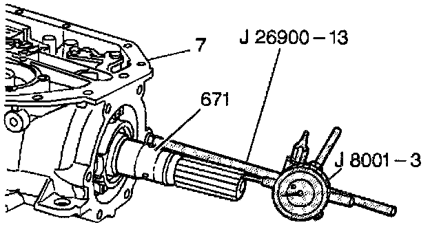 3. Assemble J 8001-3 and mount the tool on the holder. Index the tool to the end of the output shaft (671).