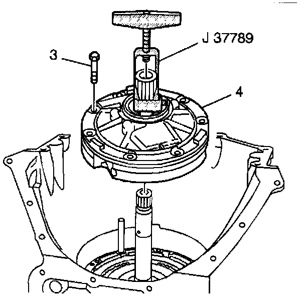 3. Install J 37789-A onto the transmission oil pump assembly (4).