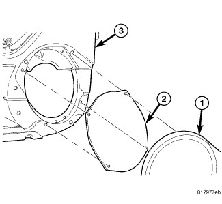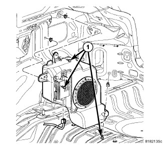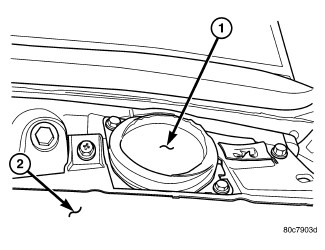 2. Install speaker (2) into the door panel (3) opening and install the four screws into door panel.