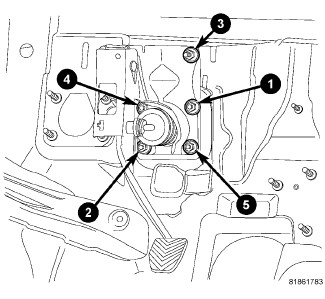 4. Tighten the brake pedal/booster mounting nuts in the proper sequence to 23 Nm (17 ft. lbs.).