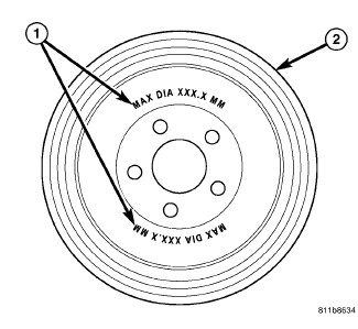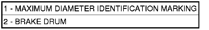 All brake drums (2) are marked with the maximum allowable brake drum diameter. All vehicles have it marked on the inside of the drum (1).