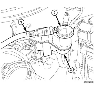 1. Attach Master Cylinder Cap (2) in place of the filler cap on the master cylinder reservoir (3).