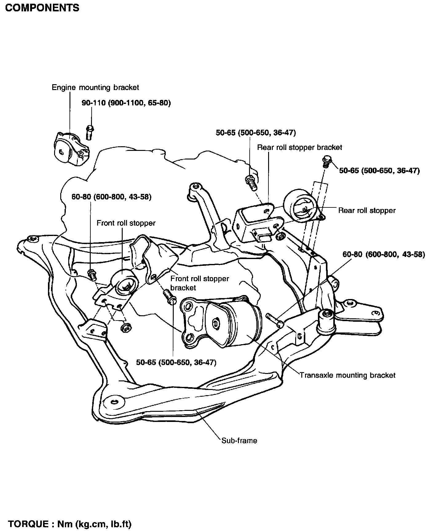Remove the front roll stopper bracket from the sub-frame.