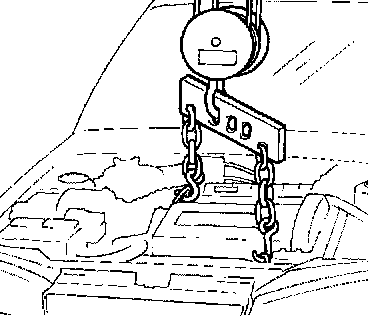 Attach an engine hoist to the engine hooks, and raise just enough so that there is no pressure on the insulators.