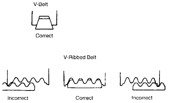 1 When installing the V-ribbed belt, check that the V-ribs are properly in alignment.