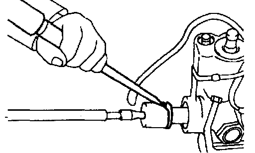 18. When the end of the circlip comes out from the notched hole of the housing rack cylinder, turn the rack stopper counterclockwise and remove the circlip.