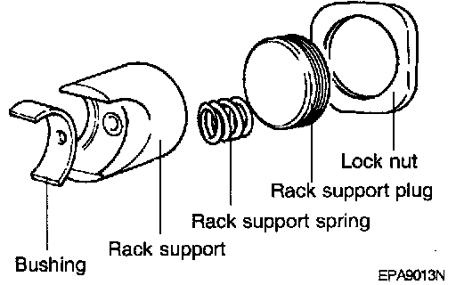 NOTE: When it cannot be adjusted within the specified return angle, check rack support plug components or replace.