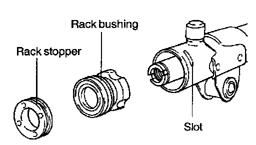 19. Remove the rack stopper, rack bushing and rack from the gear housing by moving it toward the piston side.