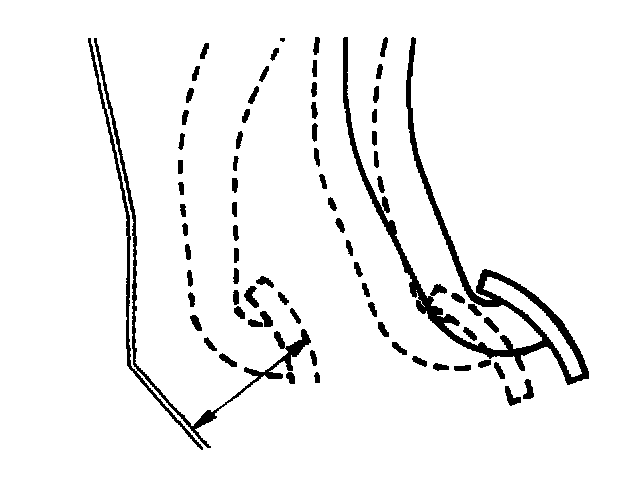 Verify that the distance from the center on the pedal pad to the dash lower panel mat is as specified.