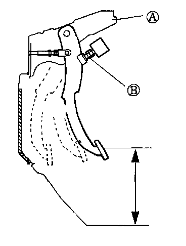 2. Loosen the locknut (B) and turn the switch (A) until it does not contact the pedal.