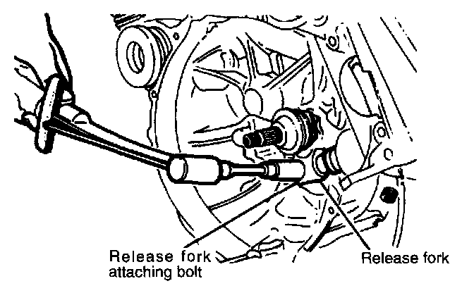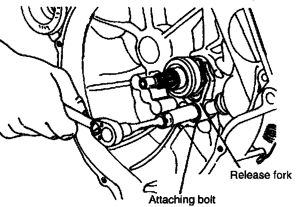 4. Install the release fork attaching bolt. Tighten the attaching bolt.