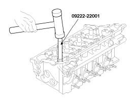 4) Using the SST (09222-28000, 09222-28100), compress the spring and install the retainer locks. After installing the valves, ensure that the retainer locks are correctly in place before releasing the valve spring compressor.