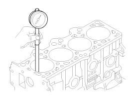 Using a cylinder bore gauge, measure the cylinder bore diameter at position in the thrust and axial direction.