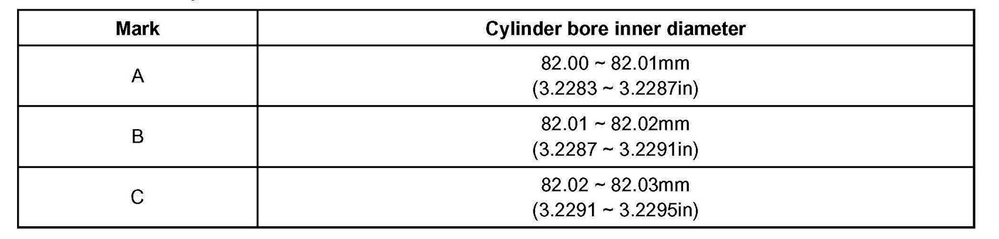 Standard diameter: 82.00 - 82.03 mm (3.2283 - 3.2295 inch)