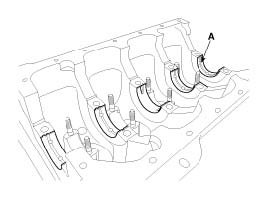 1) Align the bearing claw with the claw groove of the cylinder block, push in the 5 upper bearings (A).