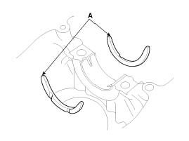 Install the 2 thrust bearings (A) under the No.3 journal position of the cylinder block with the oil grooves facing outward.
