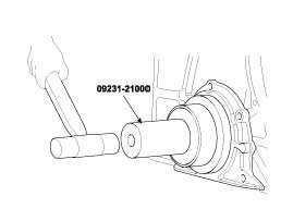 2) Using the SST (09231-21000) and a hammer, tap in the oil seal until its surface is flush with the rear oil seal retainer edge.
