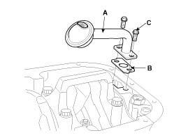 Install a new gasket (B) and oil screen (A) with 2 bolts (C).