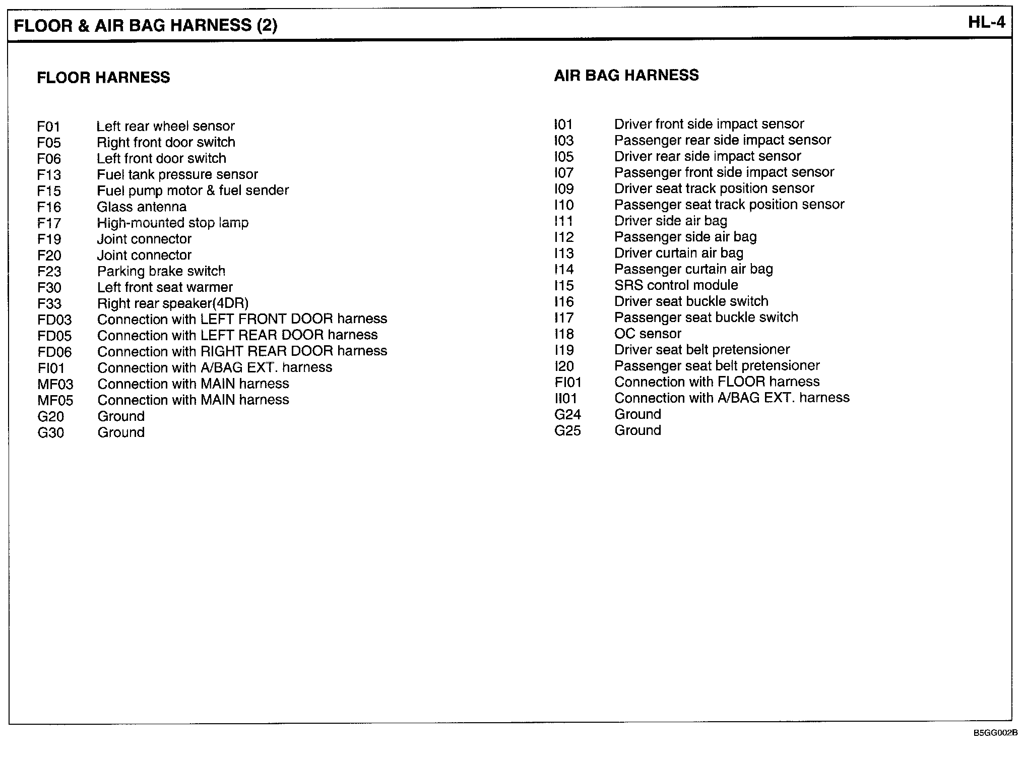 Floor & Air Bag Harness Index:
