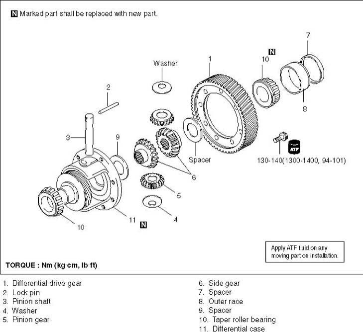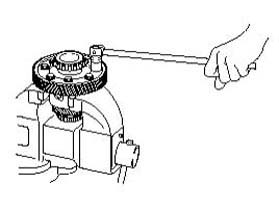2. Remove the differential drive retaining bolts and remove the differential drive gear from the case.