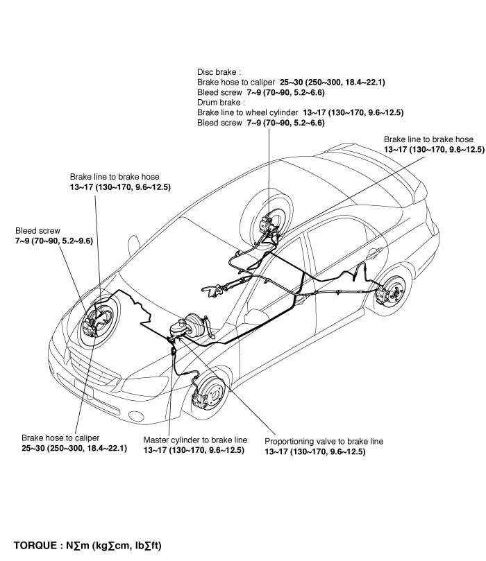 A. Check the brake hose and line joint for leaks, and tighten if necessary.