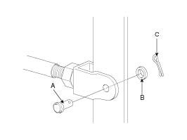 1. Remove the cotter pin (A), washer (B), and clevis pin (C).