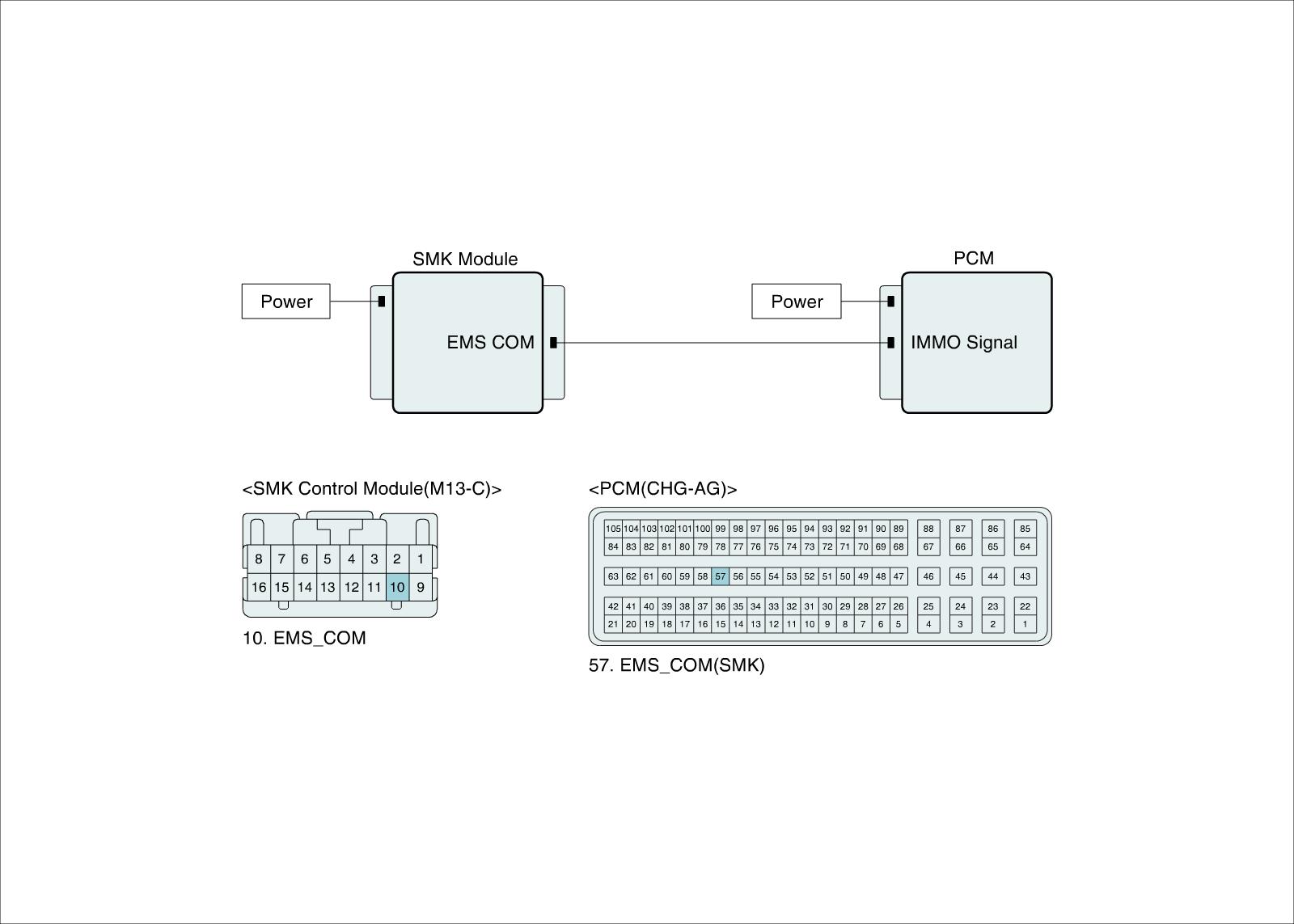 Smart key Module communicates with PCM through the serial communication line. If PCM requests authentication from Smart key Module after IG ON, Smart key Module check authentication with transponder then, sends this signal to PCM whether authentication is O.K or not.