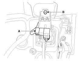 2. Pre-tighten the bracket fixing bolt(B) in dash panel.