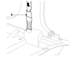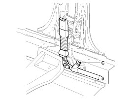 2. To remove the seat belt anchor pretensioner (C), keep on pushing the lock pin (A) as arrow direction. And then remove the seat belt after pushing the lock pin (B).