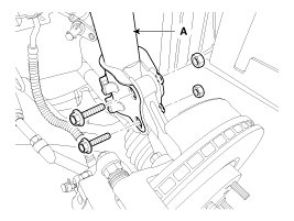 4. Disconnect the front strut assembly (A) from the knuckle by loosening the bolt & nut.