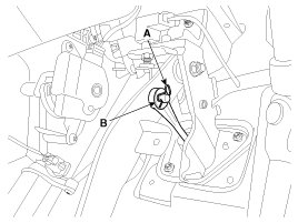 3. Disconnect the clutch tube (B) and reservoir hose (A) from the clutch master cylinder.