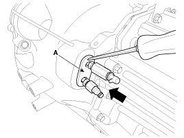 3. Remove the concentric slave cylinder assembly (B) by pushing the rubber (A) to forward.