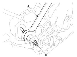 3. Tighten the plug(B) during the clutch pedal pressed. Afterwards, raise the pedal with a hand.