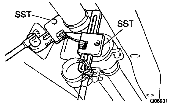 (a) Using SST, loosen the adjusting nut until it can be turned by hand. SST 09922-10010.